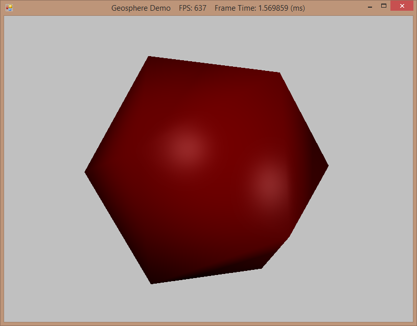 Frank Luna's Introduction to 3D Game Programming with Direct3D 11.0, Chapter 6, presented a method of generating of generating a geodesic sphere, which I previously skipped over. The code for this example is based upon his example, with some improvements to eliminate redundant vertices.