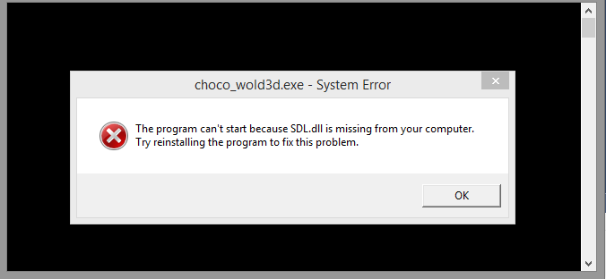 - If you run at this point, you will see a different error message, complaining that SDL.dll is missing