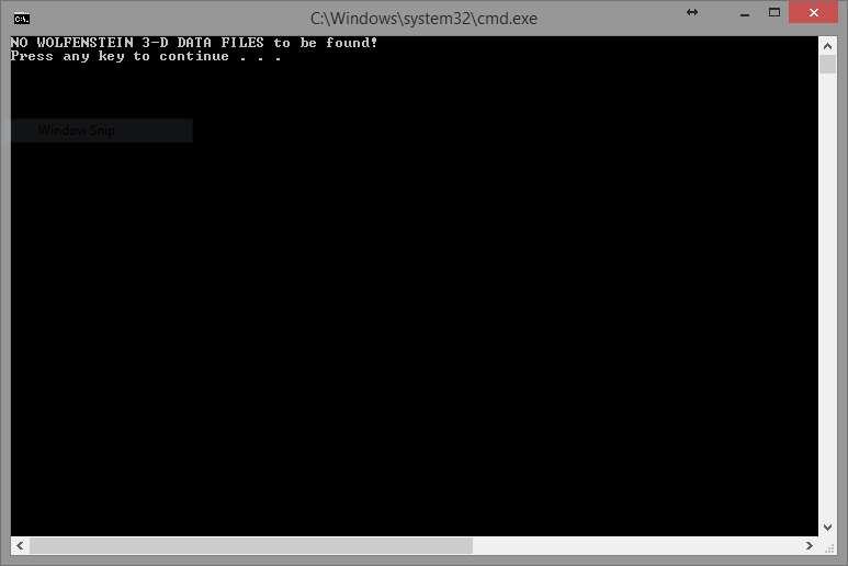 With the data files copied over, we should be ready to go, right? Not so fast. If you try to run the project from within Visual Studio, you will probably still see the "NO WOLFENSTEIN 3D DATA FILES to be found!" error message. Why?